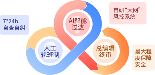 第二,健全内容审核机制,建立三道内容“防火墙”:平台内容先通过AI智能过滤审核,再由“人工7×24小时”轮班制的无间断复审,最后由总编室进行第三道审核通过后,方能上线。