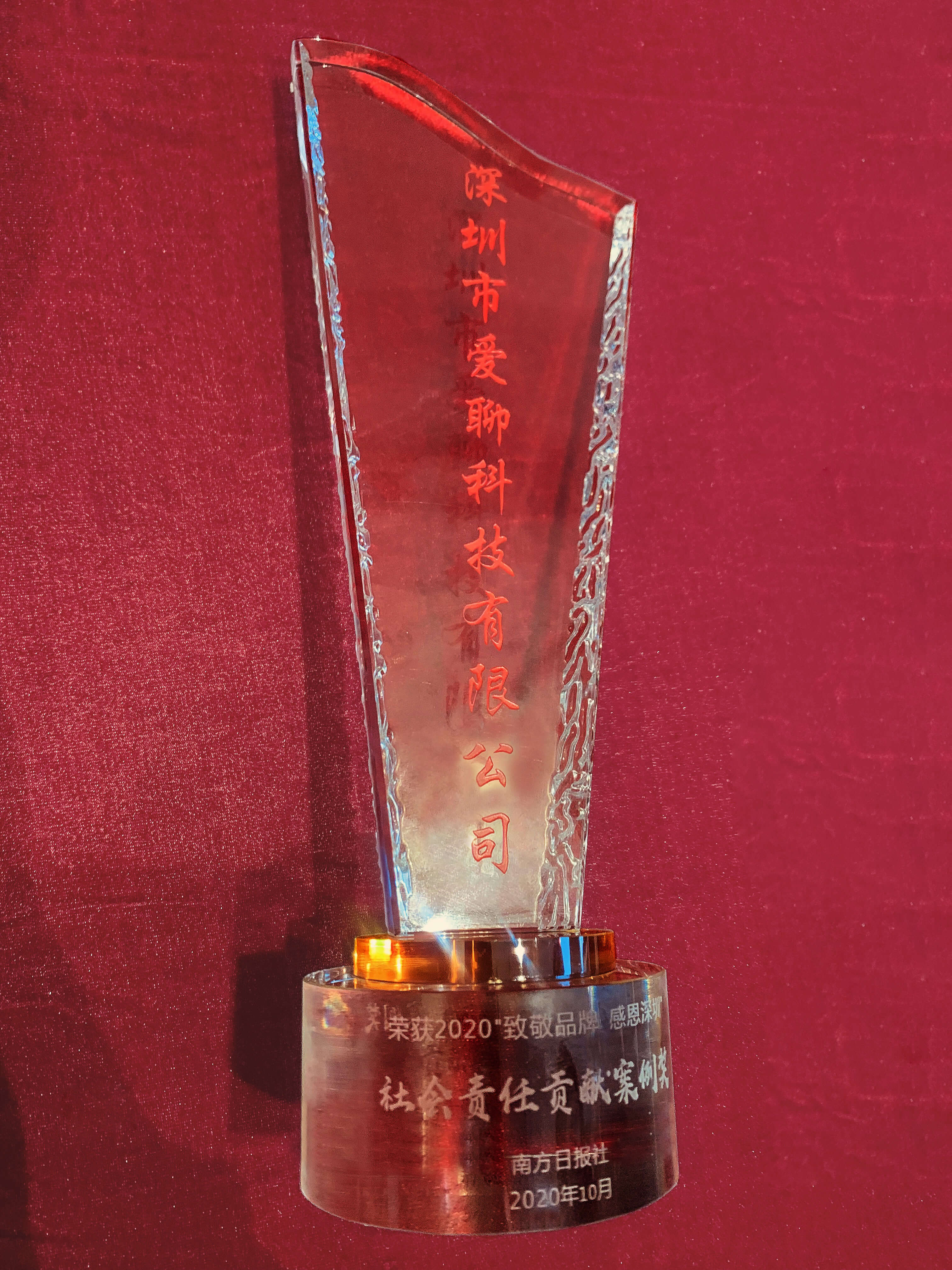“社会责任贡献案例奖”奖杯